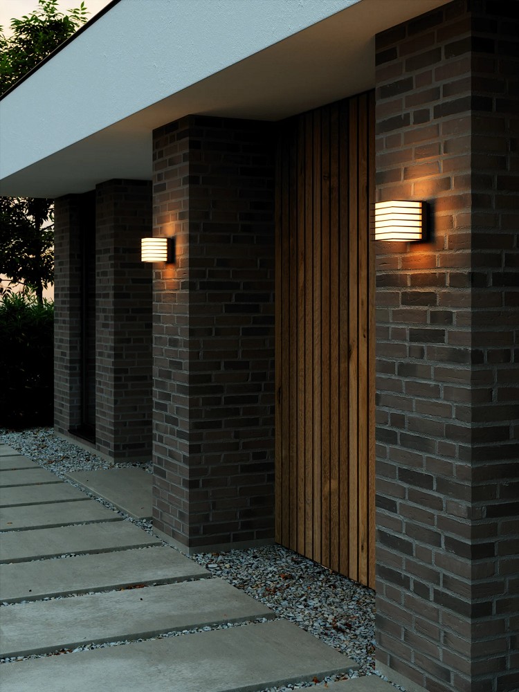 Fluctus ist ein modernes, fast kubistisches Design für die Außenbeleuchtung. Das quadratische, fortschrittliche Design mit Metalllamellen passt zu den meisten modernen Häusern und spendet ein weiches, diffuses Licht neben der Haustür, auf der Terrasse oder in der Garage.