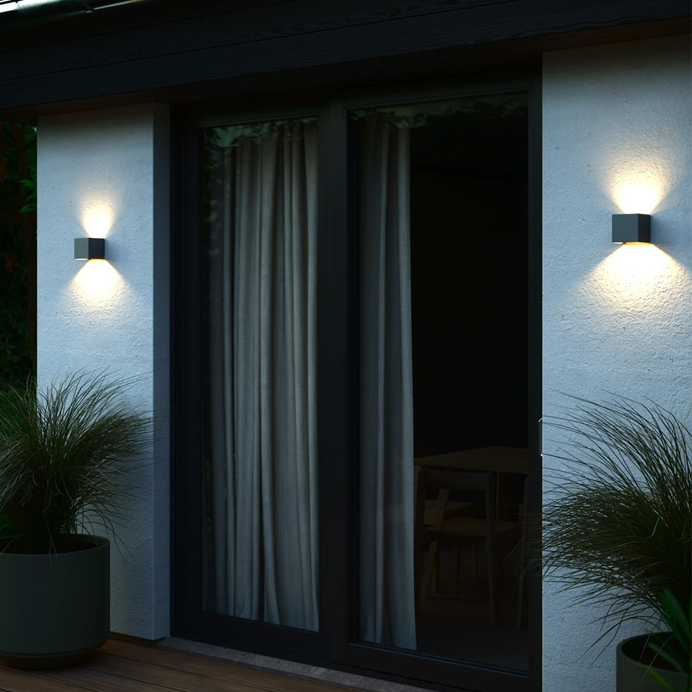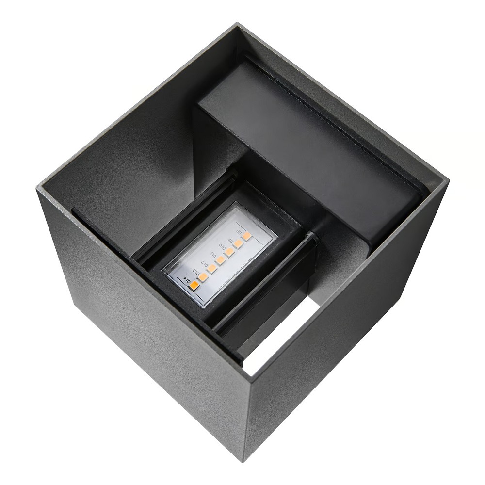 Milda Kubi mit ihrem einfachen, minimalistischen Design erzeugt einen sowohl nach oben als auch nach unten gerichteten interessanten Lichteffekt an der Wand. Nutzen Sie die integrierten Lichtmasken, um das gewünschte Lichtmuster zu erzeugen.