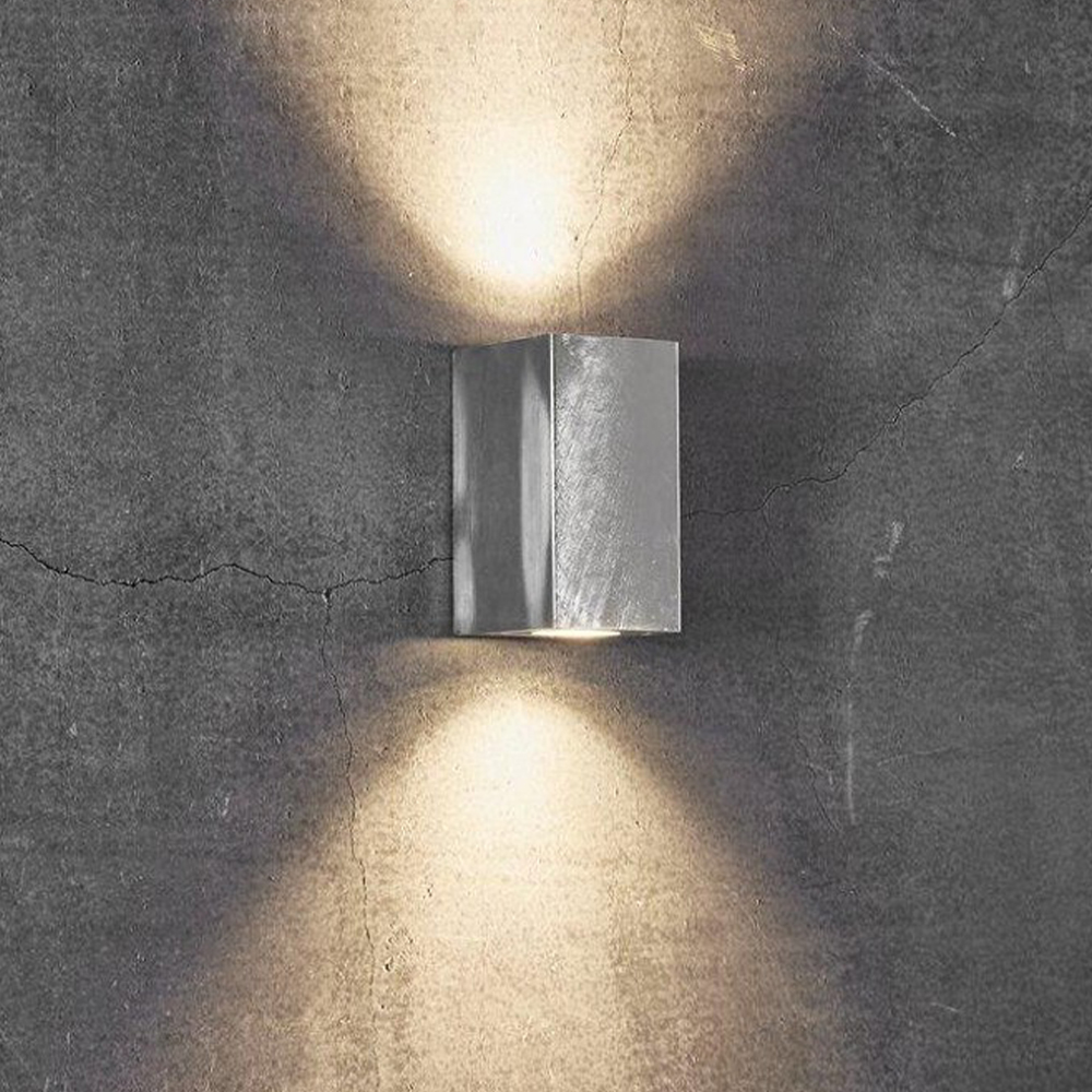 Die aus Aluminium verarbeitete puristische Canto Maxi Kubi 2 Außenwandleuchte mit aus verzinktem Metall besticht durch ihre schlichte kantige grobe Linienführung und ist dadurch ein modernes Lichtobjekt für Hausfassaden. Sie strahlt ihr Licht nach oben und unten aus und setzt damit dekorative Lichtsakzente an der Außenfassaden. Der kubische Korpus strahlt skandinavischen Minimalismus aus und macht die Leuchte dekorativ und skulptural zugleich. Die Außenwandleuchte eignet sich besonders gut für die Beleuchtung von Eingangsbereichen, Balkonen und Terrassen. Hinweis: Die Canto Kubi Maxi 2 kann mit mehreren Leuchten parallel geschaltet werden, was diese Leuchte äußerst funktional macht. Entworfen wurde die Canto Maxi Kubi 2 vom dänischen Designer Bønnelycke. Bitte bestellen Sie 2 GU10 Leuchtmittel dazu.