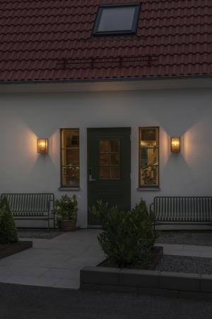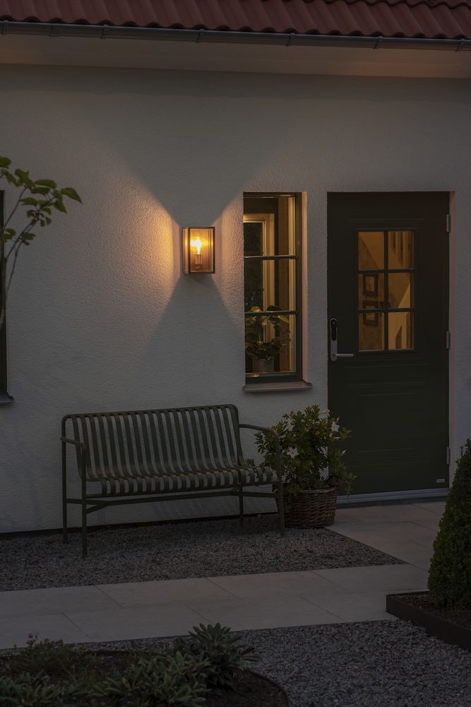Das klare Leuchtenglas der Außenwandleuchte gewährleistet eine ideale Ausleuchtung. Das klassische Design wirkt stilvoll und außerordentlich zeitlos.