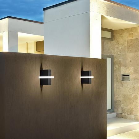 OKI ist eine besondere, nicht alltägliche, Außenwandleuchte mit einem kantigen Diffusor in einem ebenfalls kantigen Gestell. Die aus witterungsbeständigem Aluminium gefertigte Leuchte beindruckt durch ihre Geometrie und dem innovativen Design. Die Wandeuchte ist optimal für die Ausleuchtung von Terrassen, Balkonen, Eingangsbereichen und Haussfassaden geeignet, da sie ihr Licht durch den satinierten Acryldiffusor nach vorne und zur Seite streut und für eine gute rundum Ausleuchtung sorgt - jedoch ohne zu blenden.