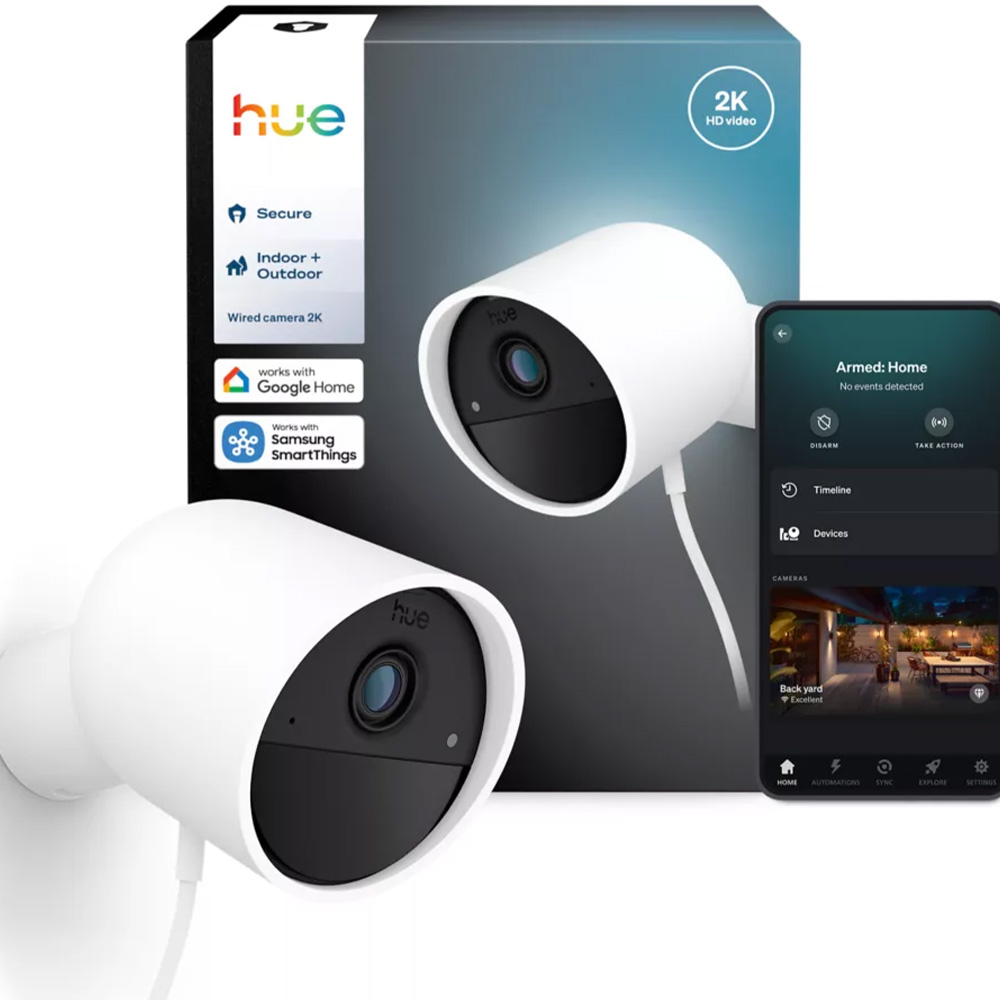 Produkt: Kabelgebundene Philips Hue 2K Kamera – Secure Outdoor Kamera (Schwarz)