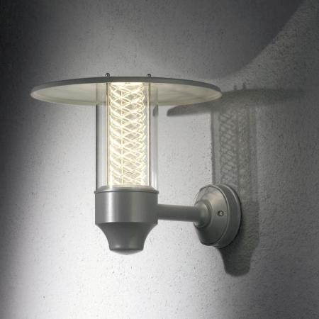 Von Konstsmide eine einfach gehaltene Wandleuchte Leuchte mit einem schlichten Glaszylinder und einem Refektor, der schön anzusehen ist, wenn die Leuchte eingeschaltet ist.