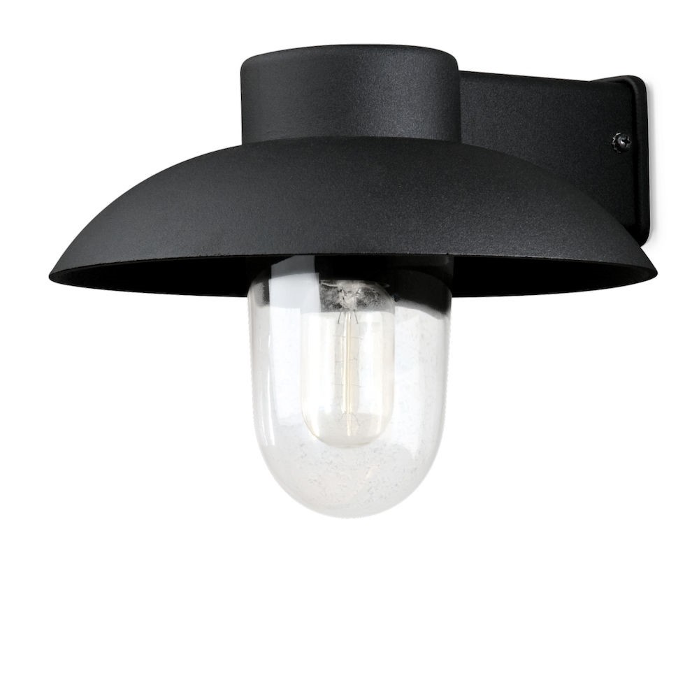 Mani Wandleuchte aus schwarz lackiertem Aluminium mit klarem Glas