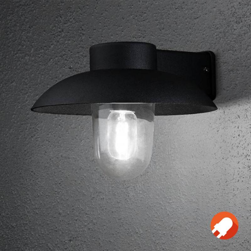 Eine modern gehaltene Wandleuchte von dem schwedischen Leuchtenhersteller Konstsmide mit einem schwarzen Leuchtenkörper aus Aluminium und einem dekorativen Glaszylinder. Die Außenwandleuchte MANI ist spritzwassergeschützt. Sie besitzt außerdem 25 Jahre Korrosionsschutz. Unter dem Metallschirm befindet sich ein Glasdiffusor, der leicht abmontiert werden kann und einfach zu reinigen ist. Diese moderne Leuchte fügt sich in viele vorhandene Umgebungen gut ein.