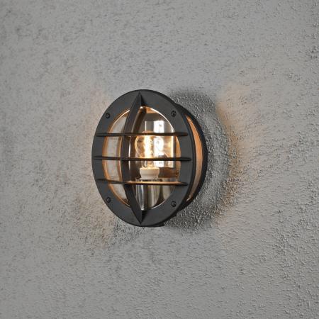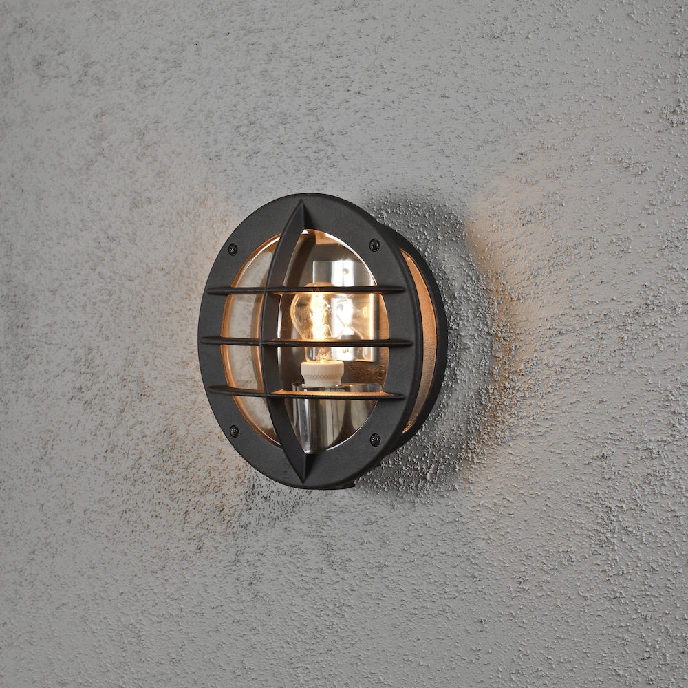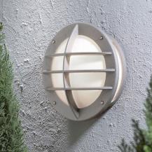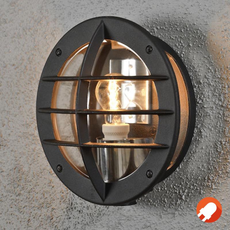 Die einfach gefertigte Outdoor Leuchte begeistert durch ihre besondere Erscheinung, insbesondere den gitterförmigen Lampenschirm, der die Leuchte gegen mechanische Einwirkungen schützt. Die Leuchte wurde in Anlehnung an Kellerleuchten, Bunkerlampen und Schiffslampen designed.