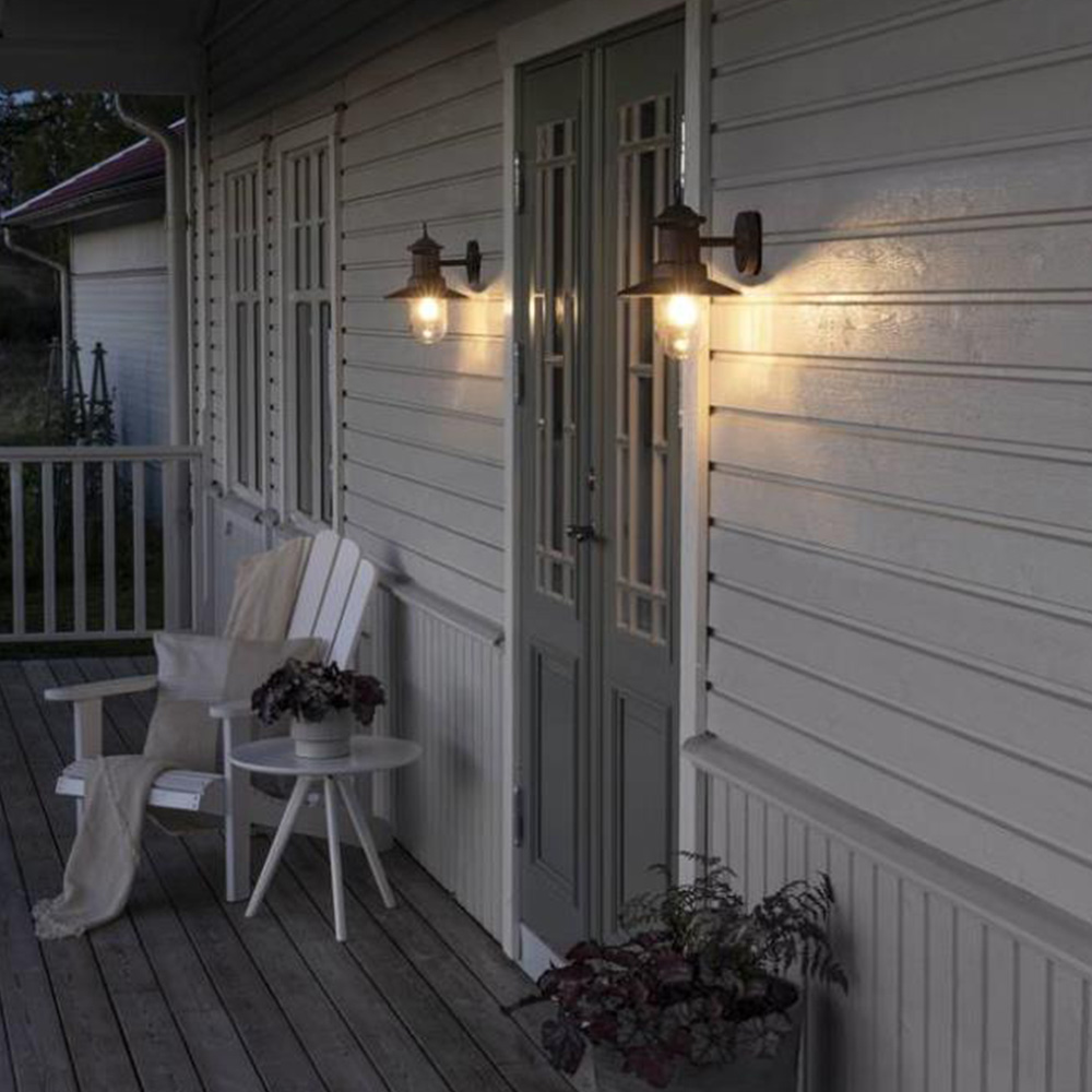 Die Napoli-Wandleuchte ist eine ausgezeichnete Wahl für dekorative und funktionelle Beleuchtung, z. B. an Eingängen, auf Terrassen oder auf Veranden. Die Leuchte besteht aus Aluminium mit einer Oberfläche in Rostoptik. Der Lampenschirm ist aus klarem Glas und umschließt die zu verwendende Glühbirne sicher. Dekorative Glüh- oder Retrofit-Lampen unterstreichen den nostalgisch-maritimen Charakter dieser Wandlampe.