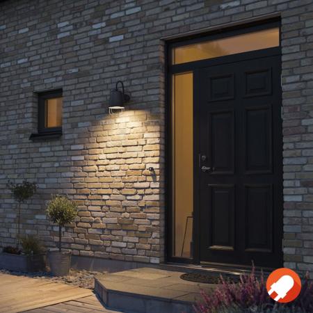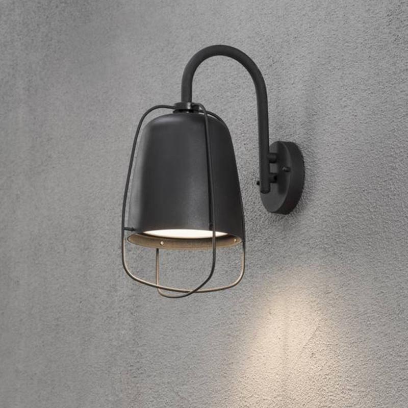 Lampe Perugia ist eine schwarze Wandleuchte mit einem einfachen Design. Sie ist aus mattschwarz lackiertem Aluminium gefertigt, mit einem opalen Diffusor aus Glas. Am Lampenschirm aus Metall befindet sich außerdem ein dekorativer Schutzkorb aus dünnem Metallgewebe. Perugia lässt sich in viele Außenbereiche integrieren und kann mit Glühbirnen mit E27-Sockel betrieben werden.