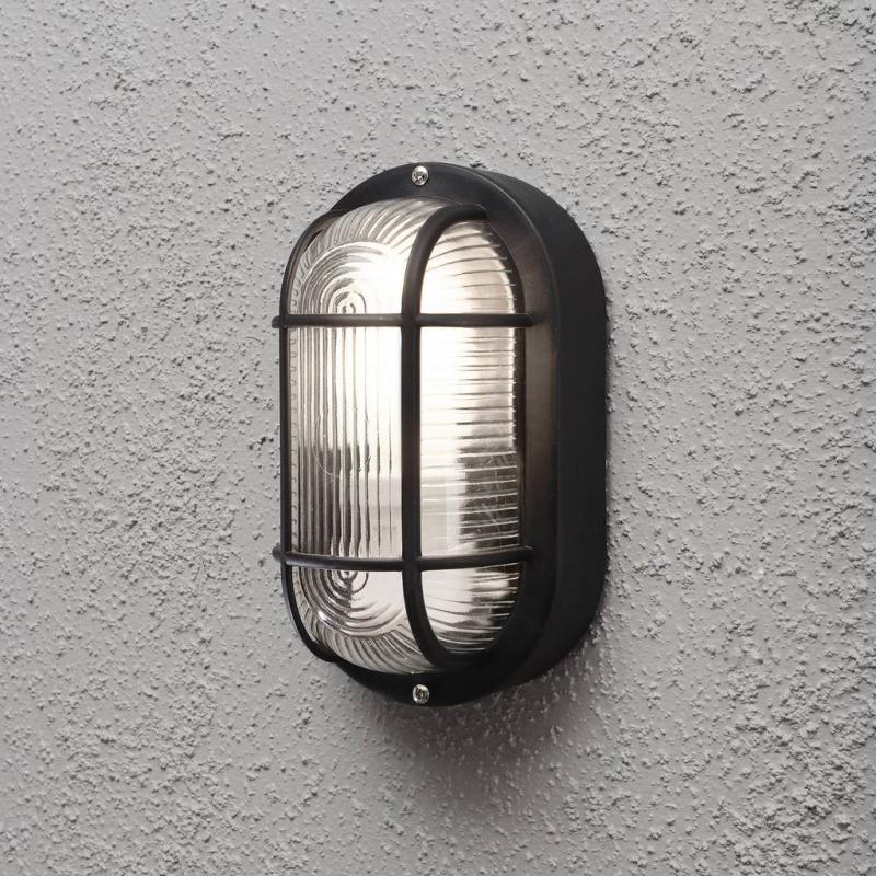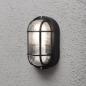 Die Außenwandleuchte Elmas ist für den Außenbereich konzipiert, da sie nach IP44 gegen das Eindringen von Staub und Spritzwasser von allen Seiten geschützt ist, aber auch für den Innenbereich geeignet ist. Das Glas der Leuchte ist in zwei verschiedenen Mustern geriffelt, was ihr einen technischen Look verleiht, ohne ihre Eleganz zu verlieren.