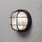 Das Schutzgitter über dem Glas verleiht der Elmas Außenwandleuchte ein etwas industrielles Flair. Besonders erwähnenswert ist die Riffelung des Glases: Sie ist in zwei verschiedenen Mustern gestaltet, die beim Einschalten der Leuchte besonders gut zur Geltung kommen und eine besondere Lichtwirkung erzielt.