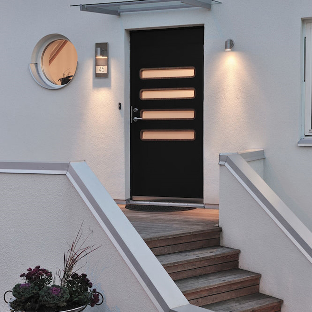 Die Modena 7655 ist eine stilvolle, moderne Hausnummern Anzeige und Außenwandleuchte in einem. Das einfache Design unterstreicht das moderne Erscheinungsbild, während der Spot darunter die Ziffern hervorhebt. Das Set umfasst drei Ziffern (0-9), die leicht an jeder Wand installiert werden können.