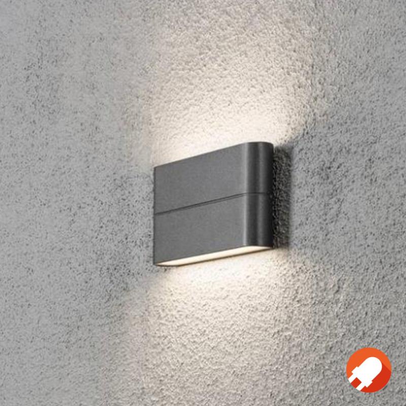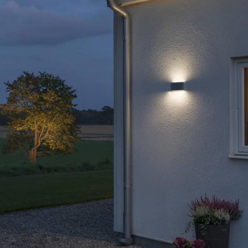 Die Wandleuchte Sitra besticht durch einen Mix aus dezenter Zurückhaltung, klarer Linienführung und Modernität. Sie ist aus Aluminium gefertigt und anthrazit lackiert. Die Lichtaustrittsflächen sind flach gestaltet. Die Wandleuchte für den Outdoor-Bereich ist mit zwei LEDs versehen und gegen Spritzwasser geschützt.