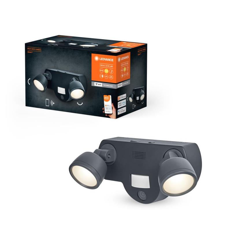 Sie ist aus Aluminium gefertigt und verfügt über zwei verstellbare Scheinwerfer, einen Tageslicht- und Bewegungssensor sowie eine Kamera mit HD-Live-Bildübertragung. Außerdem verfügt sie über eine Fernsprech- und Alarmfunktion. Die Daten werden auf der zu verwendenden Speicherkarte oder nach Einbindung über WLAN in der LEDVANCE SMART+ Cloud gespeichert. Dies ermöglicht auch die Bedienung per Sprachbefehl. Per App auf dem Tablet/Smartphone können alle Einstellungen vorgenommen, die Live-Bilder der Kamera verfolgt oder die Kommunikation mit Besuchern etc. geführt werden. Die Schaltung des Lichts sowie die Aktivierung der Kamera kann auch automatisch über den Sensor erfolgen.