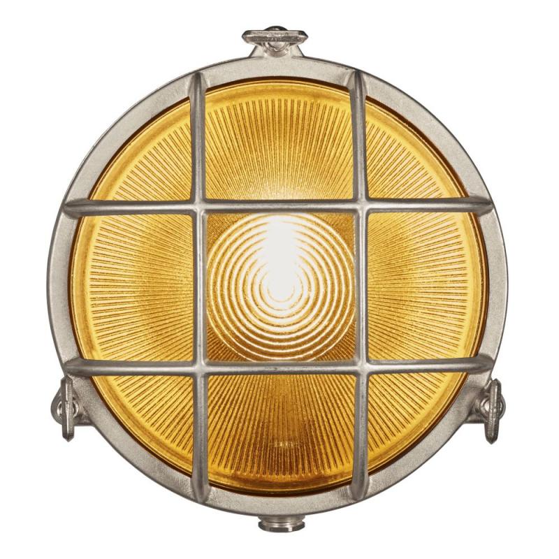 Der Rahmen der maritimen Wandleuchte ist aus Messing mit einem Nickelüberzug gefertigt. Das Design macht Polperro zu einer sehr dekorativen und klassischen Wandleuchte, die sich schön bei der Haustüre, bei der Garage oder an einem Lattenzaun platzieren lässt. Aber auch an Fassaden von Steinbauten und grob verklinkerten Außenwänden macht diese Leuchte eine gute Figur. Darüber hinaus kann Polperro parallel geschaltet werden, was die Leuchte extrem praktisch macht. Der maritim-rustikale Look der Leuchte wird insbesondere durch die drei offen liegenden Schrauben, dem Schutzgitter und die Abdeckung aus geriffeltem Glas geprägt. Bitte bestellen Sie 1 E27 Leuchtmittel dazu.