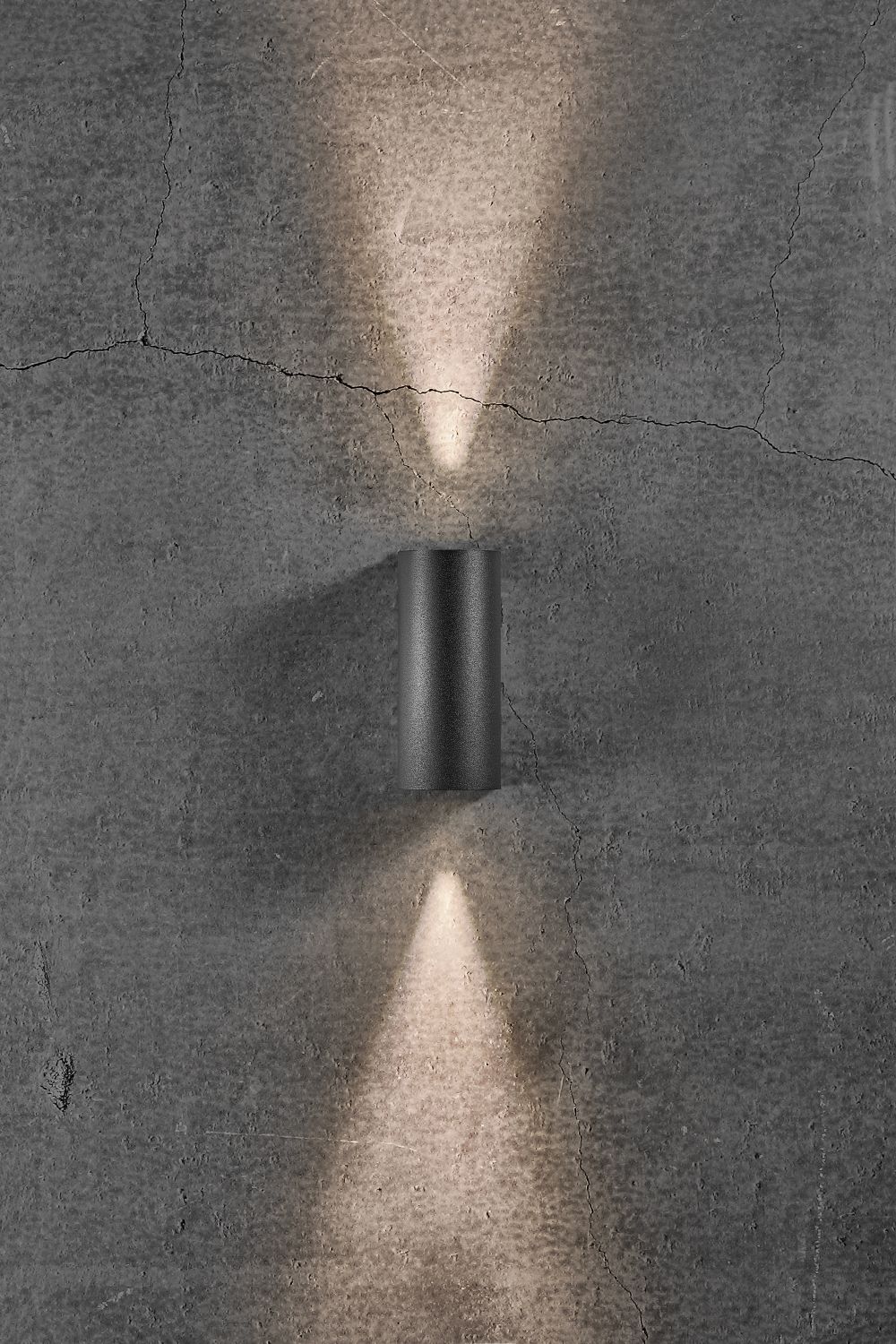 Die Asbol ist eine schlichte und elegante Wandleuchte, die für den Außenbereich entwicklelt und aus hochwertigem & lackierten Metall gerfertigt ist. Die Leuchte strahlt sowohl nach oben als auch unten Licht ab und ist ideal für die Einfahrt, den Eingangsbereich, die Terrasse oder den Balkon geeignet. In der Leuchte sind 2 warmweiße LED-Leuchtmittel mit einer Leistung von je 150 Lumen bereits enthalten.
