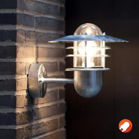Die Agger Wandleuchte ist eine traditionelle Außenwandleuchte aus verzinktem Stahl, die im nordischen Stil gefertigt wurde. Die zeitlos klassische Wandleuchte schützt mit ihrer klaren Glashaube das Leuchtmittel auf eine dekorative Weise. Dank der verzinkten Oberfläche ist diese Leuchte insbesondere gegenüber dem nordischen Klima witterungsbeständig und daher besonders gut in küstennahen Gebieten einzusetzen. Die Wandleuchte ist aufgrund ihrer Ausstattung mit der Schutzart IP54 als Außenleuchte prädestiniert. Beleuchten Sie Ihren Hauseingang, Balkon oder Terrasse mit der einladenenden Formgebung und dem angenehmen Lichtschein dieser Outdoor Leuchte. Bitte bestellen Sie ein E27 Leuchtmittel dazu.