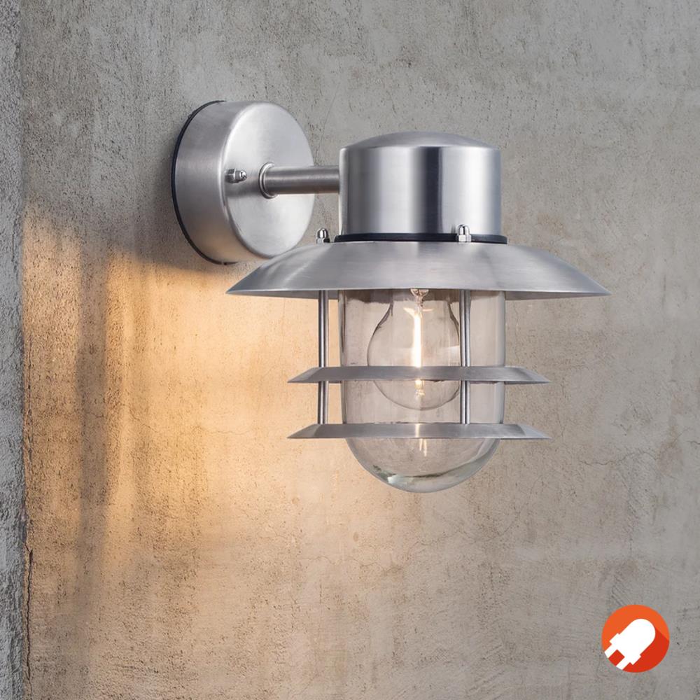 Dieses im taditionellen Stil gehaltenen Leuchtenmodell Blokhus aus Edelstahl für den Outdoorbereich verfügt über einen nach oben gerichteten Lampenschirm. Durch ihre schlichte Erscheinung wirkt die Outdoor Wandleuchte stilvoll und stellt ein zeitloses Modell dar. Bitte bestellen Sie ein E27 Leuchtmittel dazu. Insbesonder in küstennahen Regionen empfehlen wir Leuchten aus verzinktem Stahl.