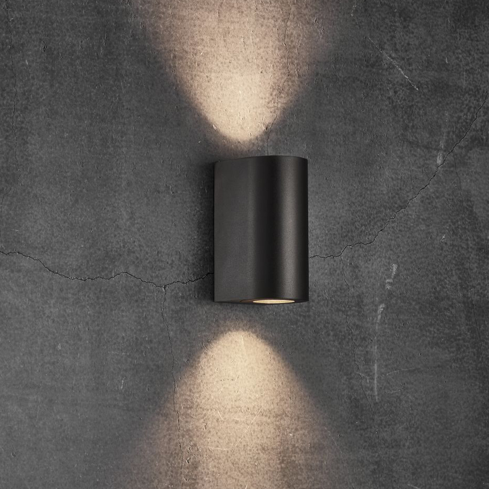 Die schwarze Canto Maxi 2 Außenwandleuchte besticht durch ihre schlichte weiche Linienführung und ist dadurch ein schickes Lichtobjekt für modernen Fassaden. Sie ist aus einem Aluminium-Rahmen mit edler weißer Lackierung gefertigt. Sie strahlt ihr Licht nach oben und unten aus und setzt damit dekorative Lichtsakzente an der Hausfassade. Die Wandleuchte eignet sich besonders gut für die Beleuchtung von Eingangsbereichen, Balkonen und Terrassen. Bitte bestellen Sie 2 GU10 Leuchtmittel dazu.
