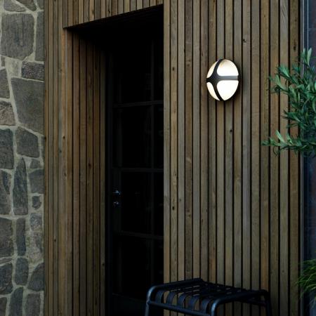 Der runde, minimalistische Designausdruck der Cross Wandleuchte der dänischen Designerin Maria Berntsen verschönert jede Art von Außengestaltung – fast wie bei einem Schmuckstück für Ihr Zuhause. Sie verströmt ein warmes, diffuses Licht, das in Ihrem Außenbereich für eine einladende Atmosphäre sorgt.