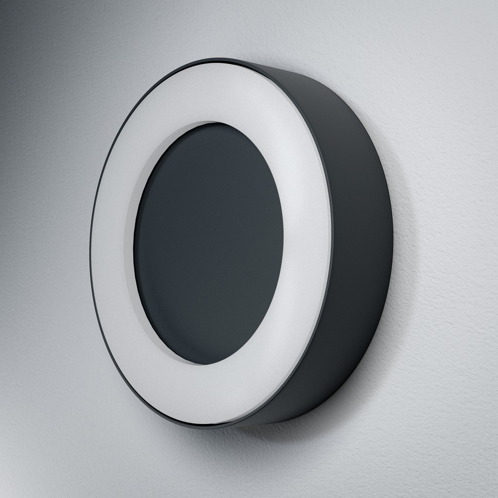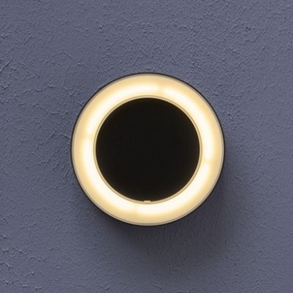 Die runde Außenleuchte "Ring Round" in Dunkelgrau strahlt eine angenehme Helligkeit sowie ein harmonisches Rundum-Flair aus. An der Fassade montiert oder zur Beleuchtung von Terrasse und Balkon strahlt die LED-Wandleuchte warmweißes Licht aus. Das Aluminiumgehäuse mit Polycarbonatabdeckung ist nur ca. 4,5 cm hoch und lässt sich mit einer Vielzahl moderner Architekturstile harmonisieren. Sie gehört der Schutzklasse IP44 an, so dass das Eindringen von Spritzwasser von allen Seiten und festen Fremdkörpern verhindert wird.