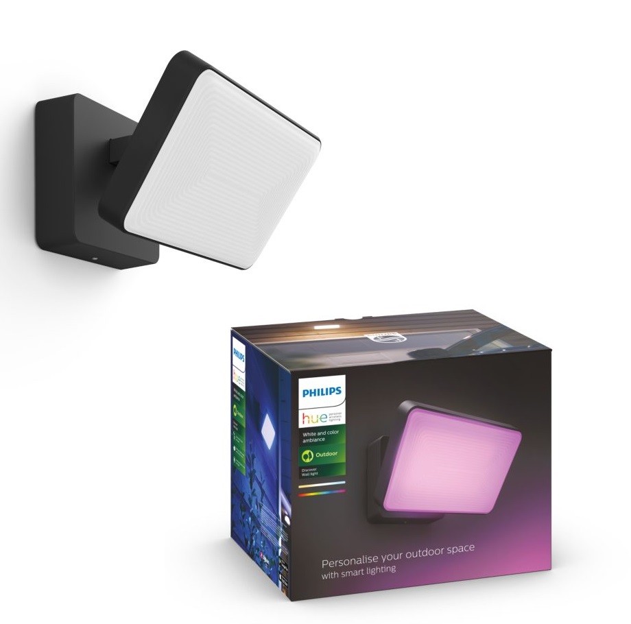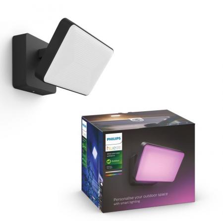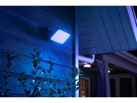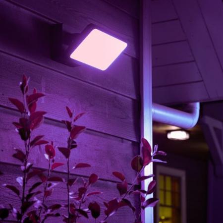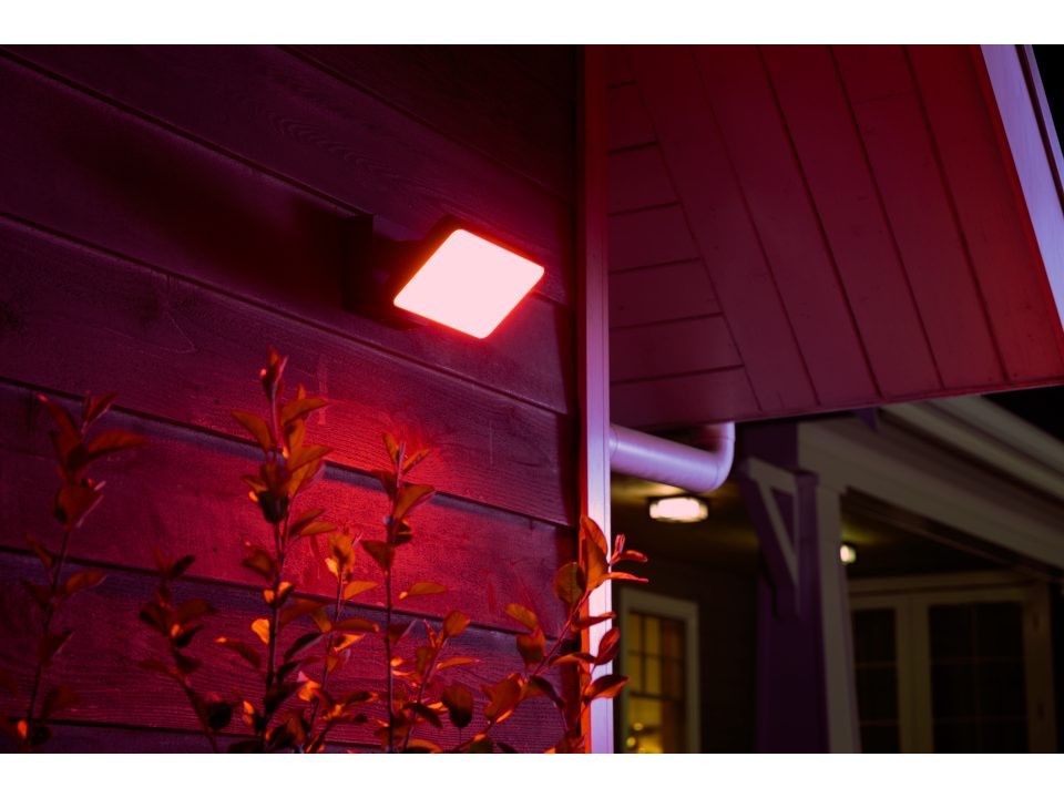 Der Philips Hue Fluter ist eine intelligente Außenleuchte mit integrierter intelligenter Technologie. Sie kann Weißtöne im Spektrum von warmem Weiß bis zu kühlem Tageslicht sowie eine Vielzahl von leuchtenden Farben darstellen.