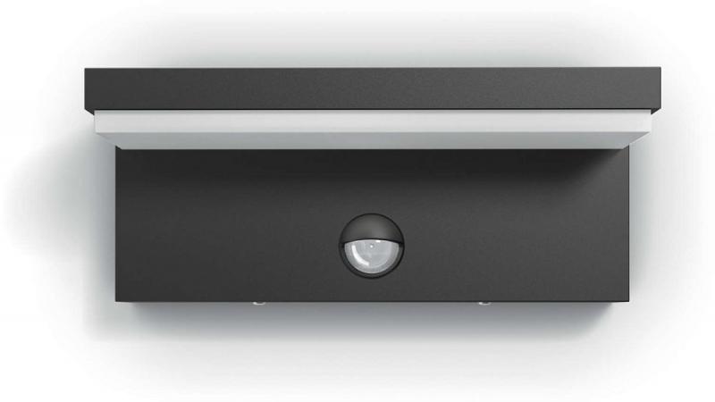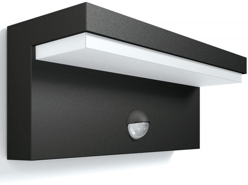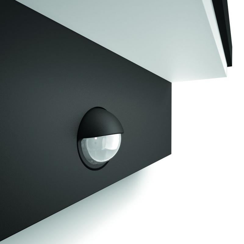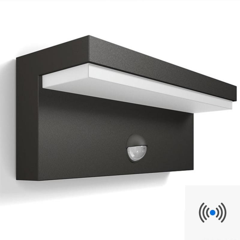 Winkelförmige dennoch geradlinige LED Wandleuchte Bustan in Anthrazit mit Bewegungsmelder