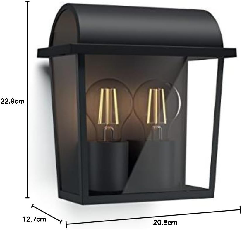 Diese Außenwandleuchte ist für den Außenbereich perfekt geeignet, da sie die Schutzklasse IP44 aufweist. Bitte bestellen Sie 2 E27 Filament Leuchtmittel dazu. Wir empfehlen Ihnen unsere energieeffizienten LED-Leuchtmittel.