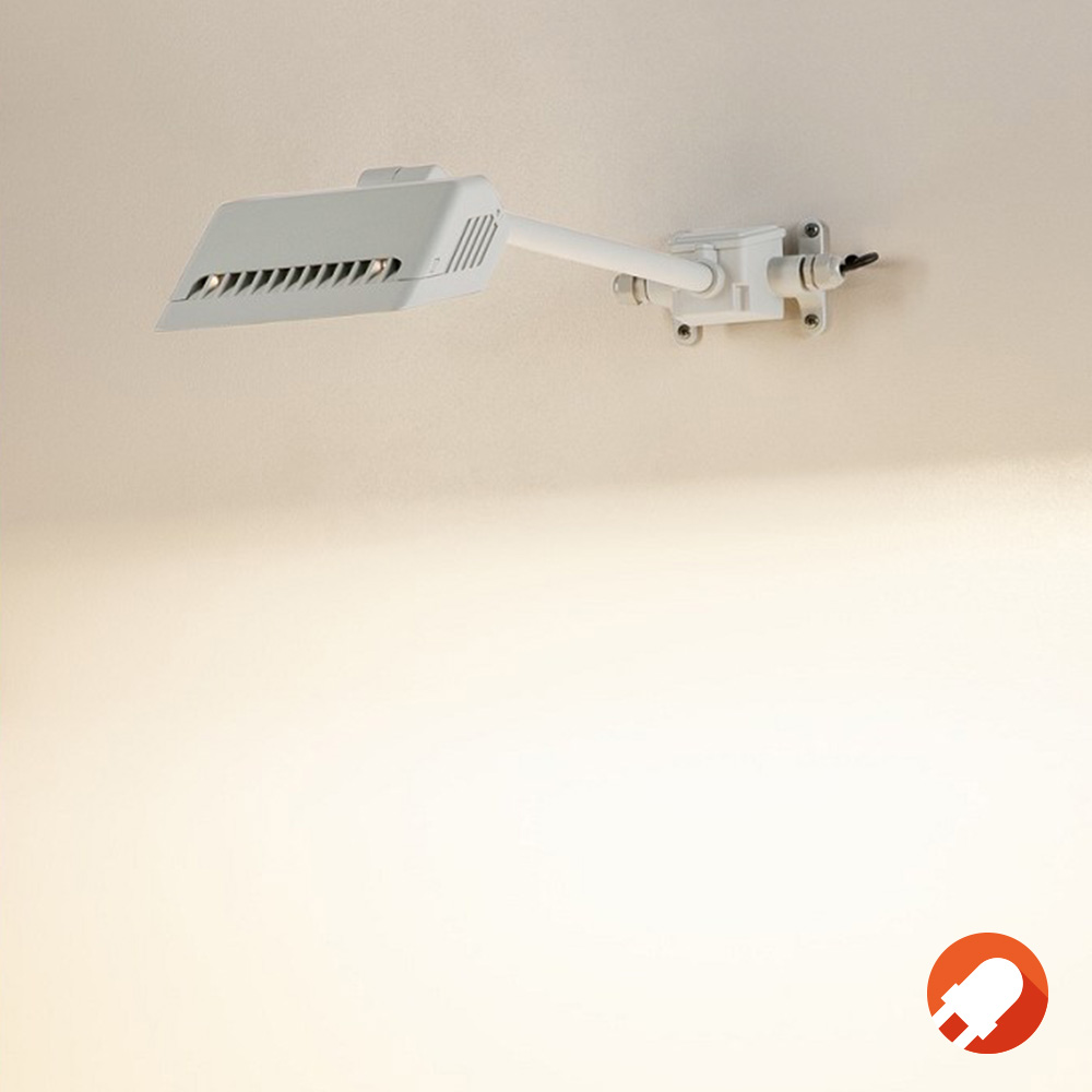 Die leistungsstarke Displayleuchte TODAY besteht aus lackiertem Aluminium welches die verbaute LED abdeckt. Der am geraden Ausleger montierte Leuchtenkopf ist schwenkbar. Durch die Schutzart IP65 ist sie für den Außenbereich geeignet. Der elektrische Anschluss der in weiß, schwarz, silbergrau verfügbaren Leuchte erfolgt an 230V Netzspannung. Diese Leuchte enthält eingebaute, leistungsstarke LED-Lampen mit 29W. EEK: A - A++.