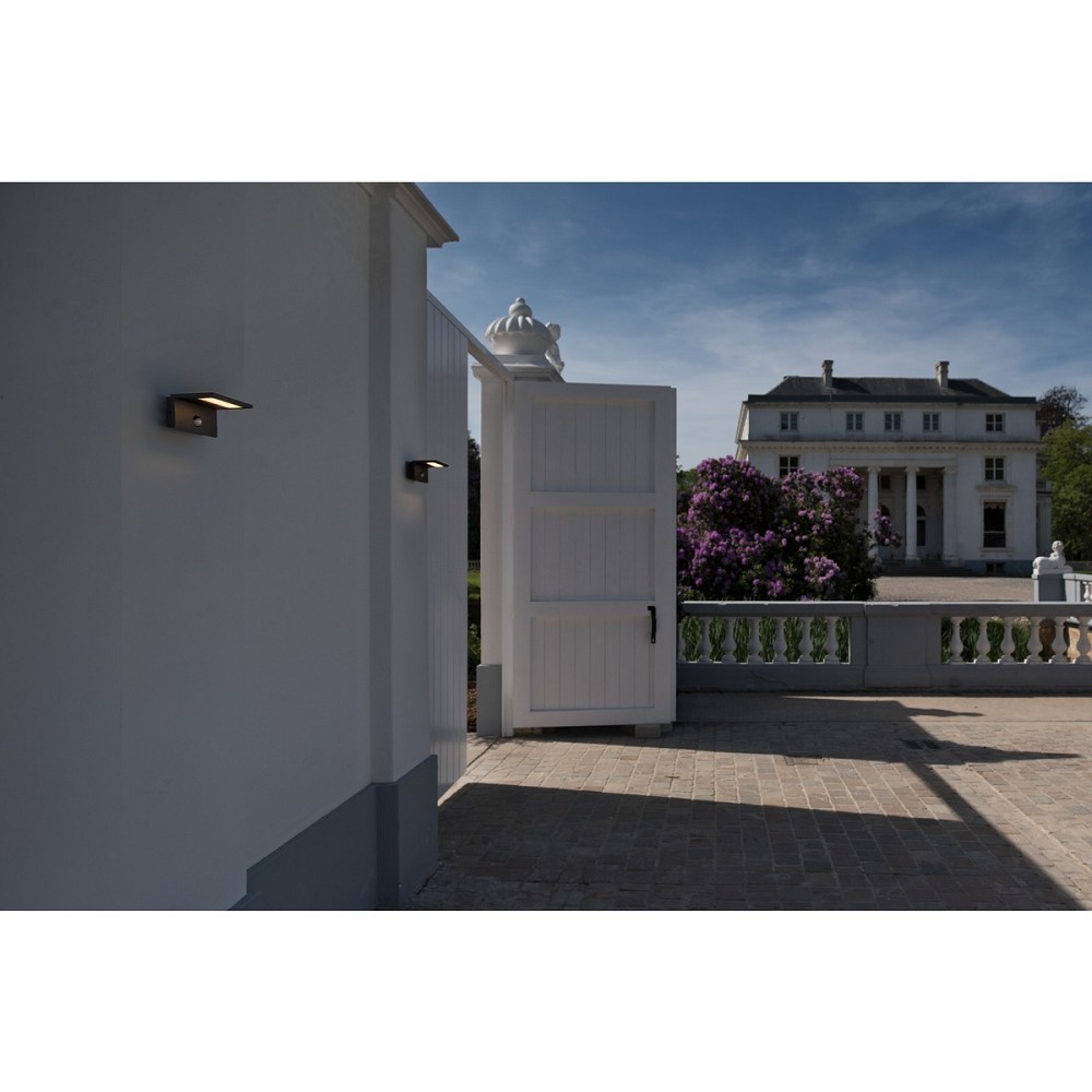 Eckige zeitlos schöne LED Aussen Wandleuchte mit Bewegungssensor in anthrazit und warmweißer 3000 Kelvin LED