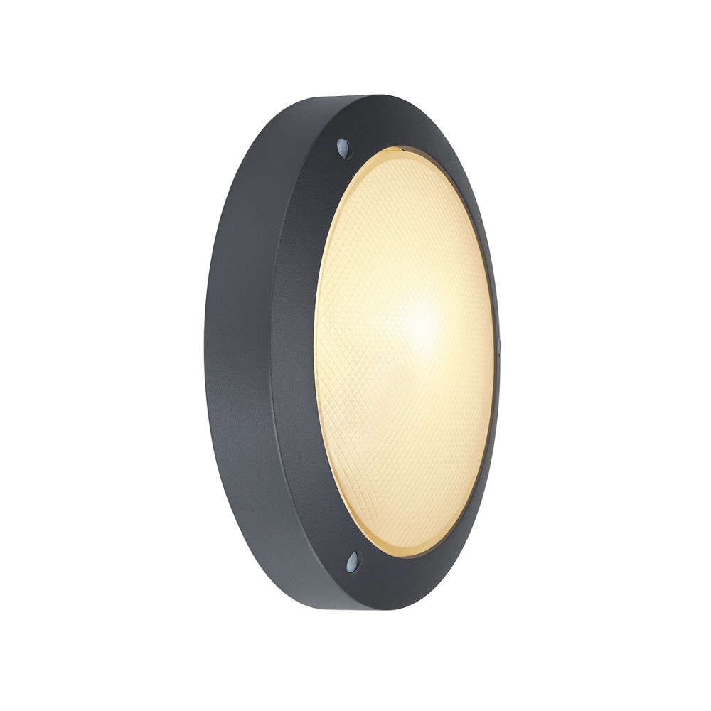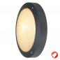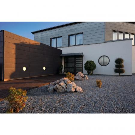 Runde Wand- und Deckenleuchte BULAN aus Aluminium die durch die Schutzart IP44 für den Außenbereich geeignet ist. Die satinierte Leuchtfläche aus Glas wird durch das lackierte Gehäuse eingefasst. Der elektrische Anschluss der in mehreren Farbversionen verfügbaren Leuchte erfolgt direkt an 230V Netzspannung.