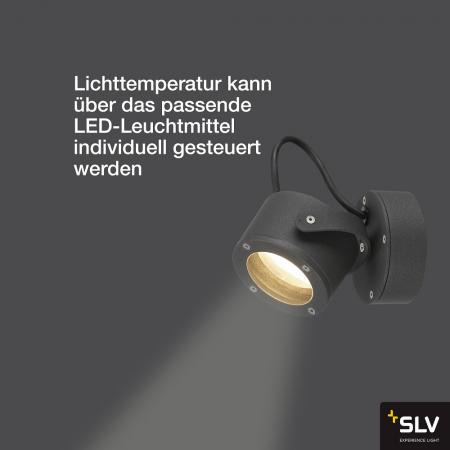 Die aus Aluminium gefertigte Wand- und Deckenleuchte SITRA 360 WL ist durch den kardanisch dreh- und schwenkbaren Leuchtenkopf, sowie der Schutzart IP44 für fast alle Anforderungen der Außenbeleuchtung geeignet. Der elektrische Anschluss der zwei verfügbaren Farbversionen erfolgt an 230V Netzspannung. Die SITRA 360 WL beinhaltet des Weiteren Stand-, sowie Spiessleuchten und ist somit universell einsetzbar. Diese Leuchte ist geeignet für Leuchtmittel der Energieklassen: B - A++