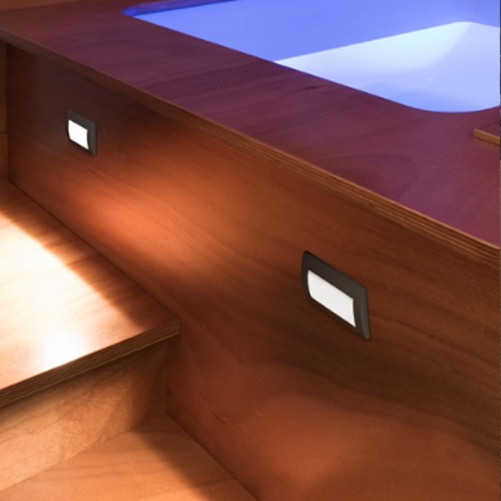 mit der Schutzart IP44 ausgestattet ist. Diese gewährleistet einen Schutz vor Spritzwasser. Für Sicherheit und Orientierung sorgt diese Wandeinbauleuchte vor allem an Mauern und entlang von Wegen oder Zufahrten.