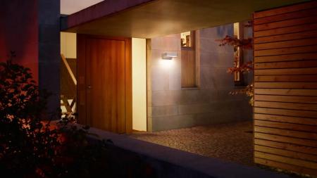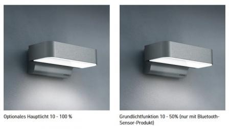 Die Außenwandleuchte mit Bluetooth ist auch in Anthrazit erhältlich und bietet die Möglichkeit, die Produkte untereinander kabellos zu vernetzen. Die Außenwandleuchte ohne Bluetooth-Sensor kann mit der SC-Version vernetzt werden.