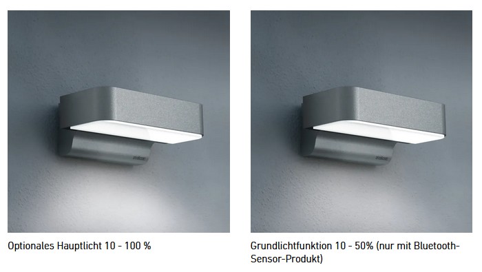 - Funktionen: einstellbares Grund- und Hauptlicht (Grundlicht nur in Kombination mit einer Bluetooth-Sensor-Leuchte)