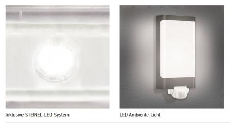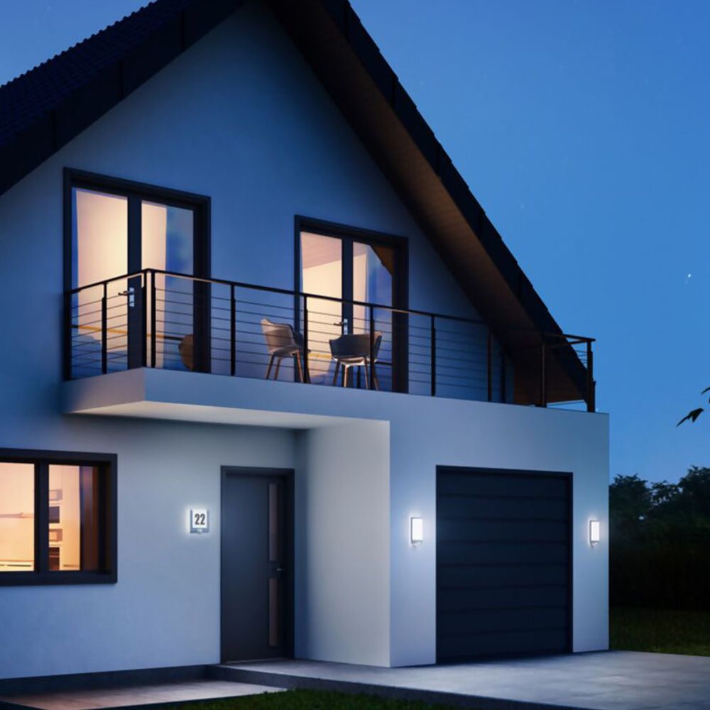 Die rechteckigen Sensor-Außenleuchten L 240 S bestechen durch ihr vertikales Design und ihr weiches Raumlicht. Moderne LED-Technologie sorgt für eine Lichtleistung von bis zu 946 lm bei einer Leistungsaufnahme von nur 9,3 W. Der integrierte Sensor bietet einen Erfassungswinkel von 180° und sorgt dafür, dass sich die Leuchte automatisch und zuverlässig ein- und ausschaltet.