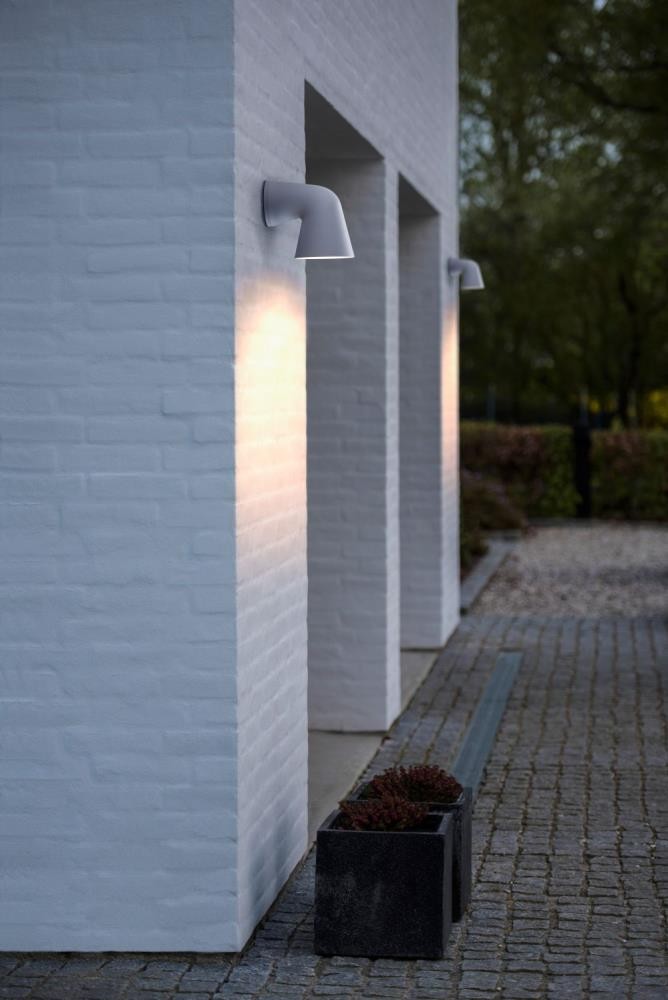 Die außergewöhnliche Front Single Wandleuchte verfügt mit ihrer Akkuratesse über ein klares, schlichtes aber wohlgeformtes Design, welches Elemente der modernen als auch klassischen Architektur aufgreift. Diese Wandlampe ist das Resultat von interessanten Möglichkeiten, die sich ergeben, wenn eine Leuchte aus Aluminium gegossen wird, und der Wunsch des Designers nach einer schönen, dezenten und ausgewogenen Außenbeleuchtung zu schaffen, in Erfüllung geht. Zeitlos wirkt das Design der Außenwandleuchte Front, die sich optimal zur Beleuchtung der Wege rund ums Haus anbietet. Sie ist aus witterungsbeständigem und weiß lackiertem Aluminium gefertigt. Das Licht, das durch ein - bei uns optional erhältlichem - GU10-Leuchtmittel erzeugt wird, wird nach unten gerichtet und durch eine gefrostete Glasscheibe blendfrei ín die Umgebung abgegeben, so dass eine homogene Ausleuchtung entsteht.