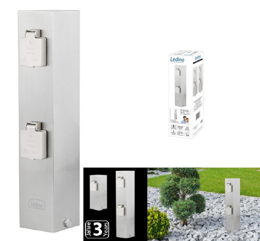 Ledino Steckdosenpfosten 4er Connect V4, Edelstahl, Outdoor