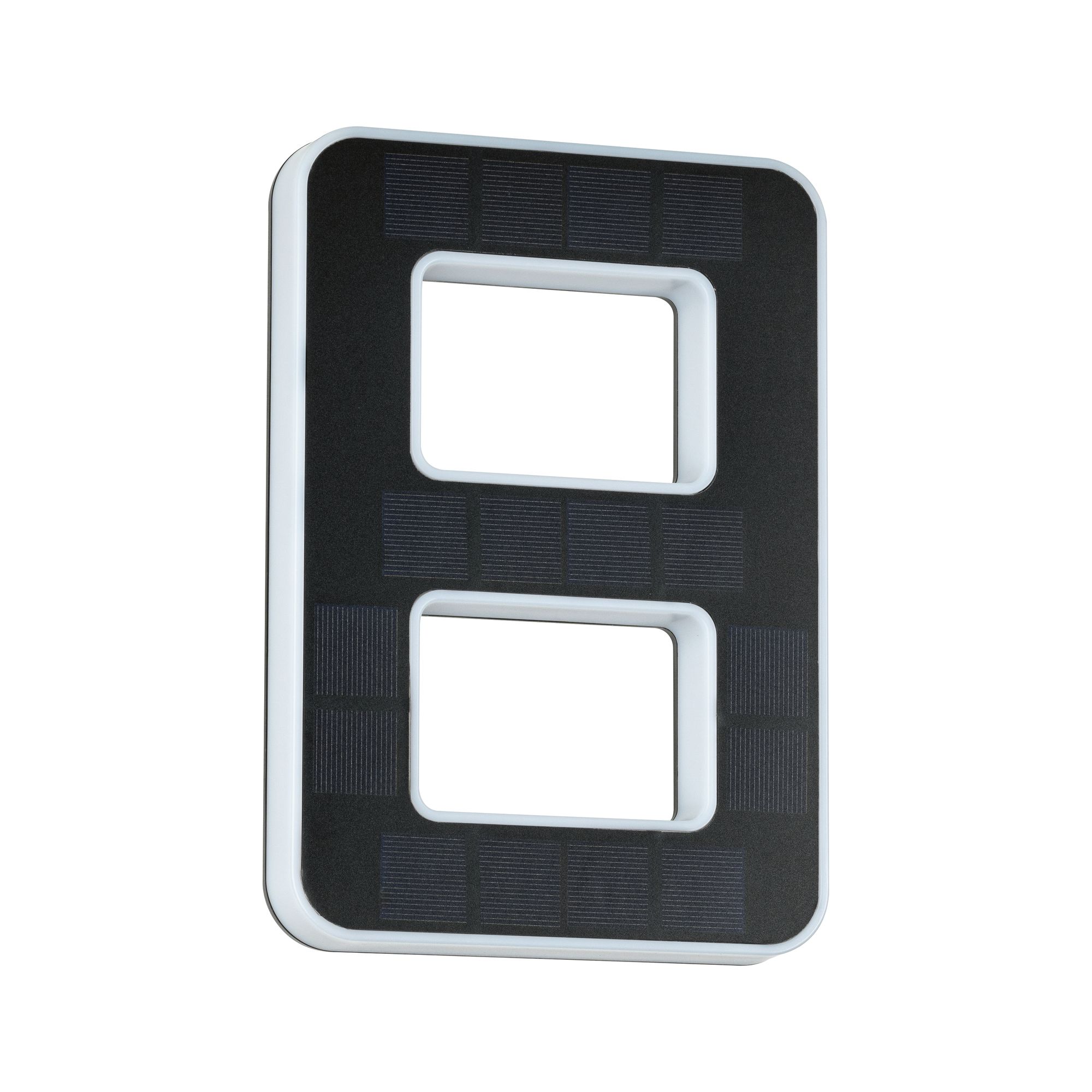 Die leuchtende Nummer 8 ist für sich allein oder mit weiteren Ziffern die perfekte Hausnummernleuchte. Dank Solarbetrieb kann sie ganz unabhängig von Stromauslass an der Hauswand befestigt werden. Tagsüber wird das unsichtbare Solarpanel vom Sonnenlicht aufgeladen, bei Nacht wird die dekorative Nummer indirekt beleuchtet.