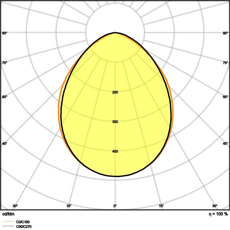 - Reflektorbasierte, symmetrische Lichtverteilung mit 100° x 100° Abstrahlwinkel