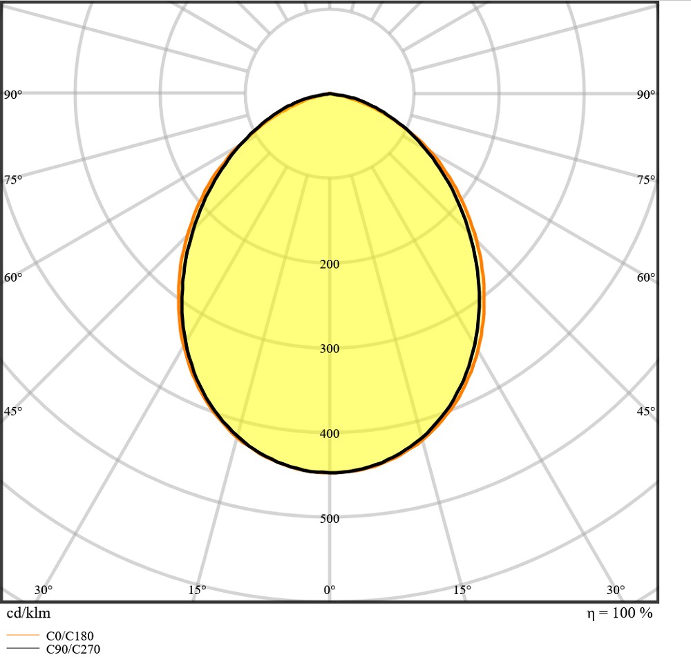 - Kein Lichtaustritt im oberen Halbraum (ULOR 0%) bei 0° Aufneigung