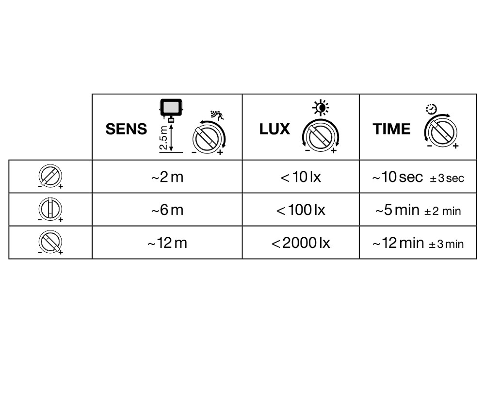 - Einfache Einstellung der Sensorreichweite, Tageslichtserkennung und Leuchtdauer