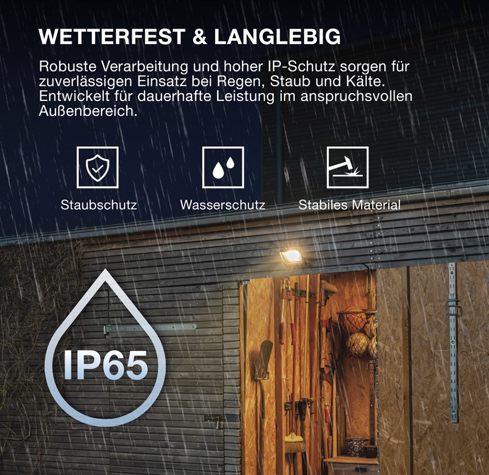 Anwendungsgebiete: Ersatz für Fluter mit Halogenlampen, Innenhöfe in Wohn- und Geschäftsbereichen, Gebäudefassaden und Sicherheit, Parkplätze und Unterführungen, Garagen, Öffentlicher Raum, Anstrahlung von Fassaden, Baustellen