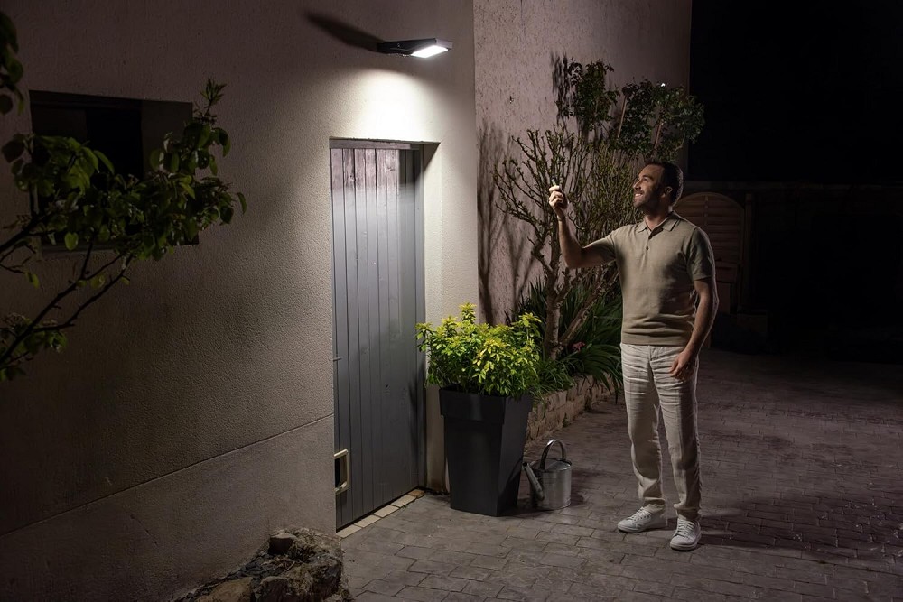 Diese wirtschaftliche, umweltfreundliche Leuchte hat einen hohen Lichtstrom und mehrere Einstellungen für Sensorreichweite, Tageslichterkennung und Haltezeit. Dank des Tageslichtsensors mit Fotozelle schaltet sich das Floodlight in Abhängigkeit vom verfügbaren Tageslicht automatisch ein oder aus.