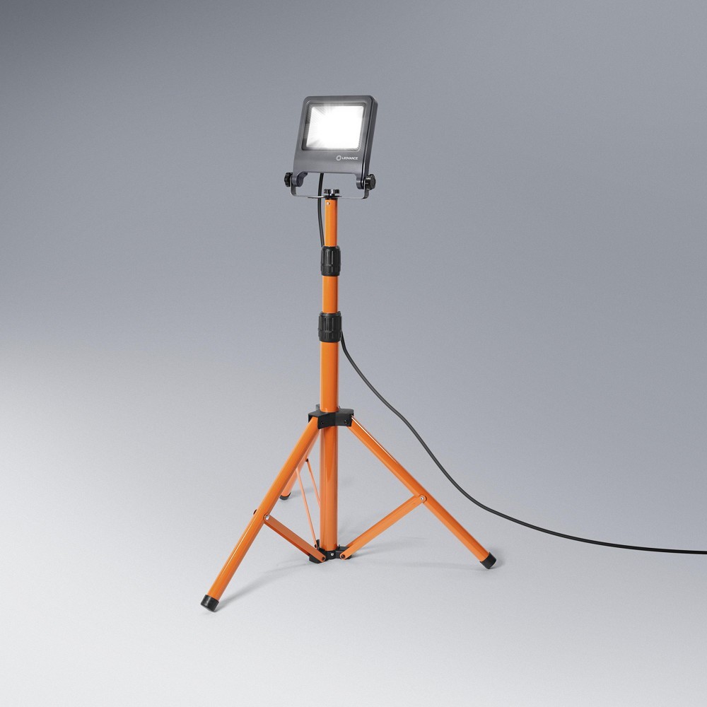 Das Stativ kann auf eine Höhe von bis zu 1,8 Metern eingestellt werden und verfügt über einen Schnellverschluss, um den Winkel des Lampenkopfes zu verstellen. Dieses Produkt ist zusammenklappbar und lässt sich daher leicht verstauen. Außerdem können Sie im Vergleich zu Halogen-Arbeitsleuchten bis zu 80 % Energie sparen!