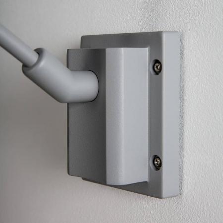 Die gewölbte Displayleuchte der MYRA Serie besteht aus lackiertem Aluminium und Glas welches das Leuchtmittel abdeckt. Der am gebogenen Ausleger montierte Leuchtenkopf ist dreh- und schwenkbar. Durch die Schutzart IP55 ist sie für den Außenbereich geeignet und ist durch den langen Arm bestens zur Beleuchtung von Namensschildern, Hausnummern und Werbetafeln geeignet. Der elektrische Anschluss der Leuchte erfolgt an 230V Netzspannung.