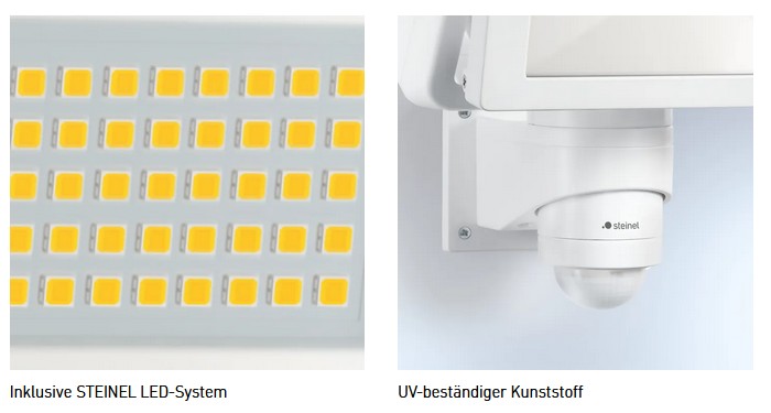 - Strahlerkopf horizontal um 80° und vertikal um 150° schwenkbar, Sensor horizontal um 160° schwenkbar, inkl. Abdeckblenden zur exakten Anpassung des Erfassungsbereichs