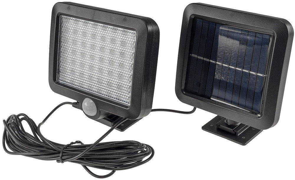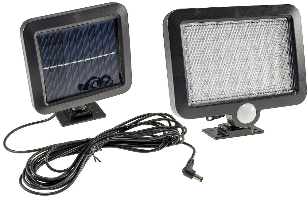 Praktischer LED Solar Fluter für Garten, Hof oder Carport. Kein lästiges Kabellegen nötig - der Fluter wird über die 2W Solarzellle und den Akku mit Strom versorgt. Das Licht schaltet bei Bewegung automatisch ein und nach 30sec wieder aus. Montage an verschiedenen Orten möglich - die getrennten Einheiten (Fluter und Solarzelle) lassen sich an 2 Orten montieren und mit dem 4,5m langen Kabel verbinden - maximale Flexibilität.