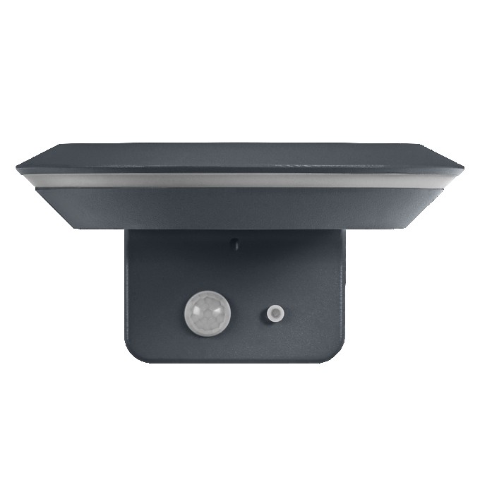 Sie hat eine moderne Funktionalität, die zu ihrem Design passt: Der linsenförmige Aluminiumkörper in dunkelgrauem Finish ist mit warmweißen LEDs auf der Unterseite und einem äußeren Ring ausgestattet. Die LEDs werden durch den integrierten Akku versorgt. Ein externer Stromanschluss ist nicht erforderlich, da auf der Oberseite ein Solarmodul eingebaut ist. Eine manuelle Bedienung über den Lichtschalter ist ebenfalls nicht notwendig, Tageslicht und Bewegungssensor schalten das Licht selbstständig ein und aus.