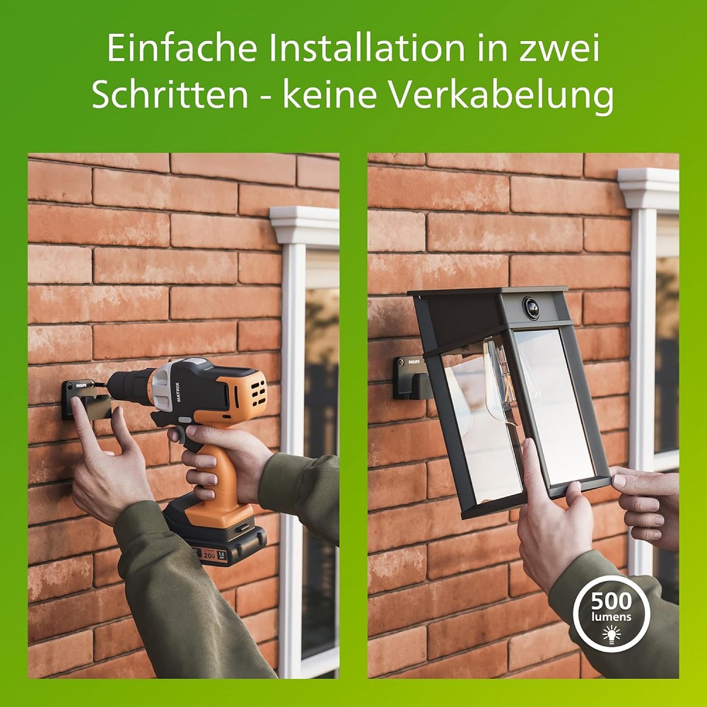Philips Geri eignet sich ideal für Hauswände, Eingänge, Gartenwege oder Terrassen und bietet eine Kombination aus modernem Stil, Benutzerfreundlichkeit und nachhaltiger Technologie.