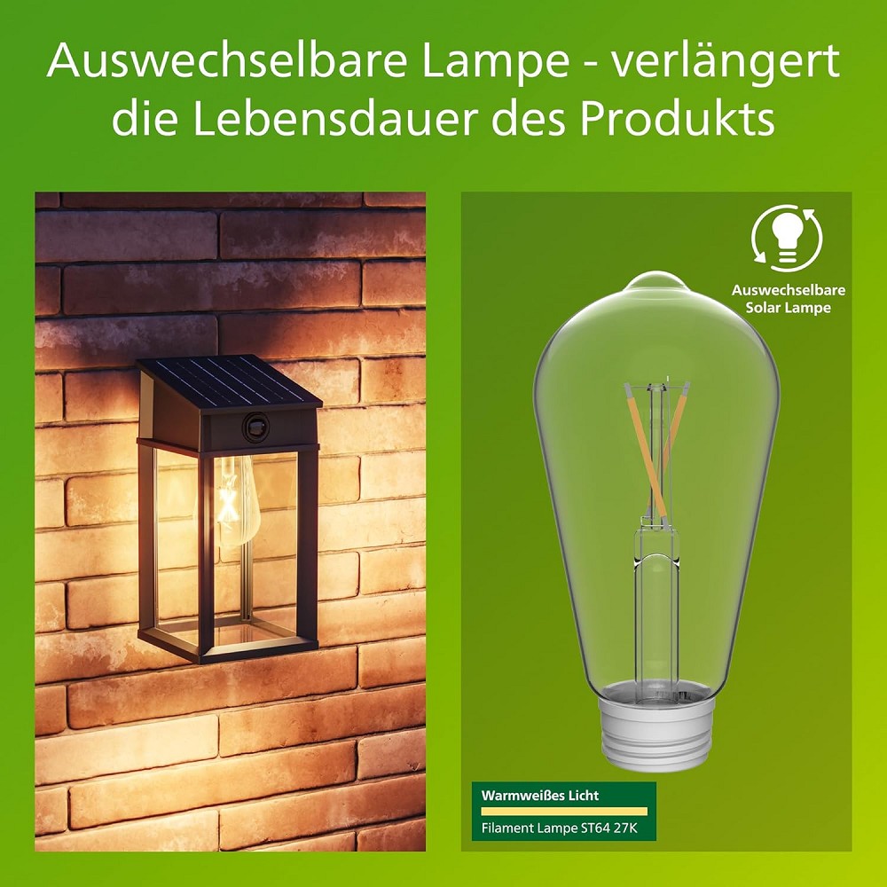 Philips Geri Solar-Wandleuchte mit Bewegungssensor, austauschbarer Lampe und Batterie